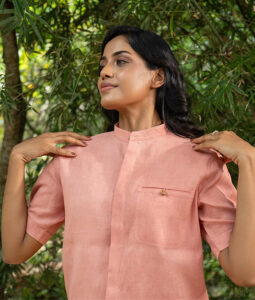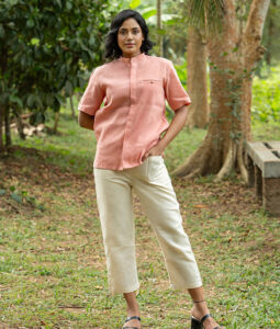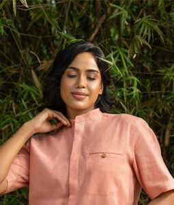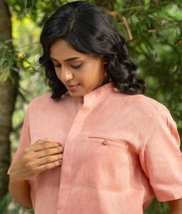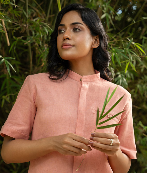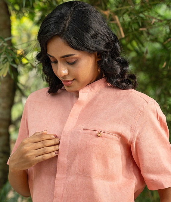 Crafted from 100% certified organic Irish linen and dyed using Ayurvedic methods, this top is gentle on your skin and free from harmful chemicals. Its semi-casual design transitions effortlessly between work and everyday wear. A mindful piece that lets you embrace the healing touch of nature.