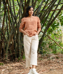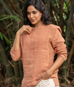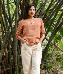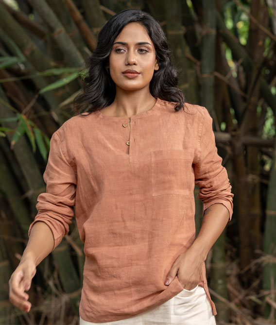 This earthen linen top is crafted from 100% certified organic linen, backed by trusted sustainability certifications. Thoughtfully designed for comfort, it’s lightweight and breathable—naturally dyed using Ayurvedic methods to be gentle on your skin and free from harmful chemicals.