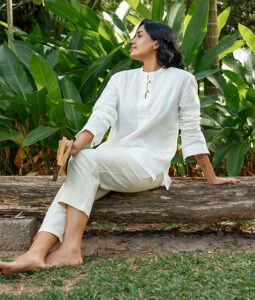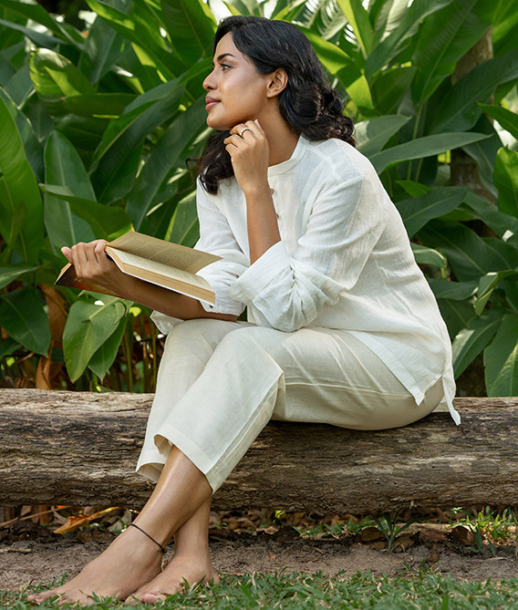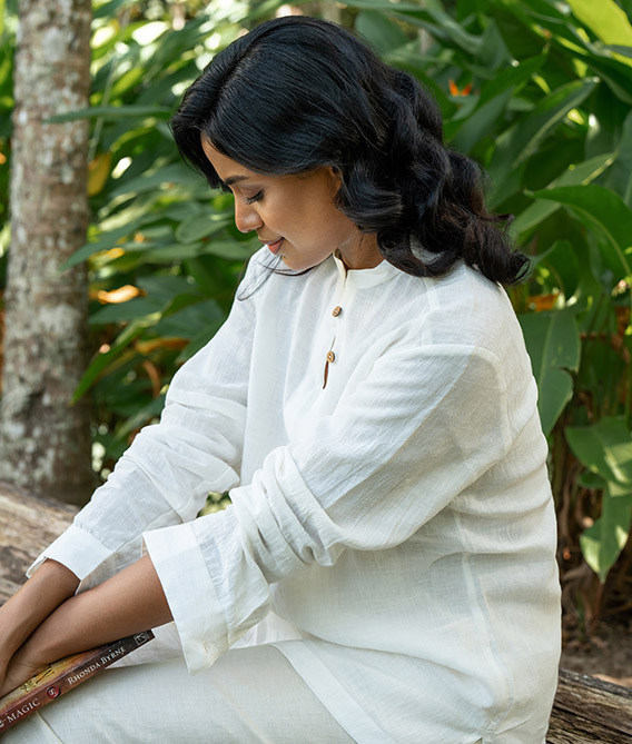 Soft on the skin and kind to the Earth, this linen top is made from 100% organic Irish flax and dyed with ancient Ayurvedic botanicals. Its clean, versatile cut suits both casual strolls and polished moments. Designed for those who seek quiet luxury rooted in nature.